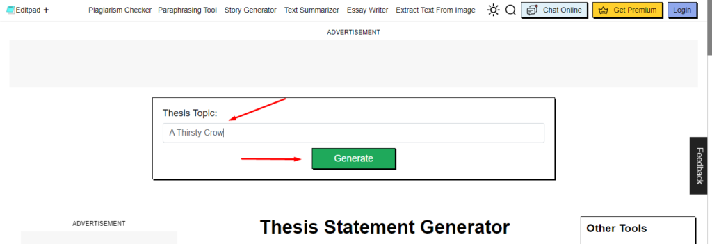 Fortunately, we have found a thesis statement generator offered by Editpad. It efficiently fulfills all the listed points above. Now, we are going to describe the usage procedure of this tool for your ease.