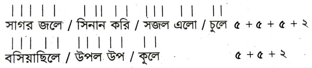 (ঙ) অক্ষর সংখ্যা যথাক্রমে ৫ + ৫ + ৫ + ২ এবং ৫ + ৫ + ২।