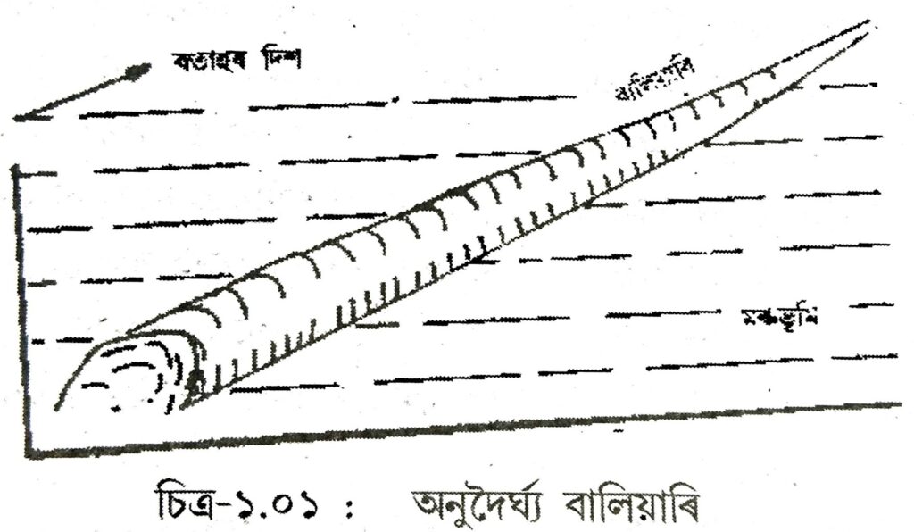 উত্তৰঃ কোনো কোনো ঠাইত আকৌ পৰিস্থিতি সাপেক্ষে অর্ধ চন্দ্রাকৃতিৰ বালিয়াৰিৰো সৃষ্টি হয়।