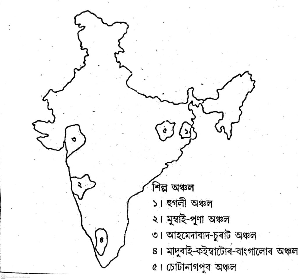 প্রশ্ন ১৪। ভাৰতৰ প্ৰধান শিল্প অঞ্চলকেইটা মানচিত্রত চিহ্নিত কৰি প্রত্যেকটো অঞ্চলৰে চমু বর্ণনা দিয়া ।
