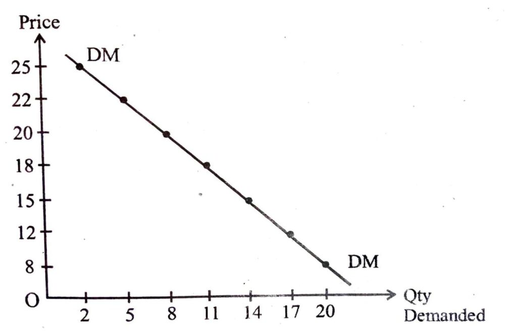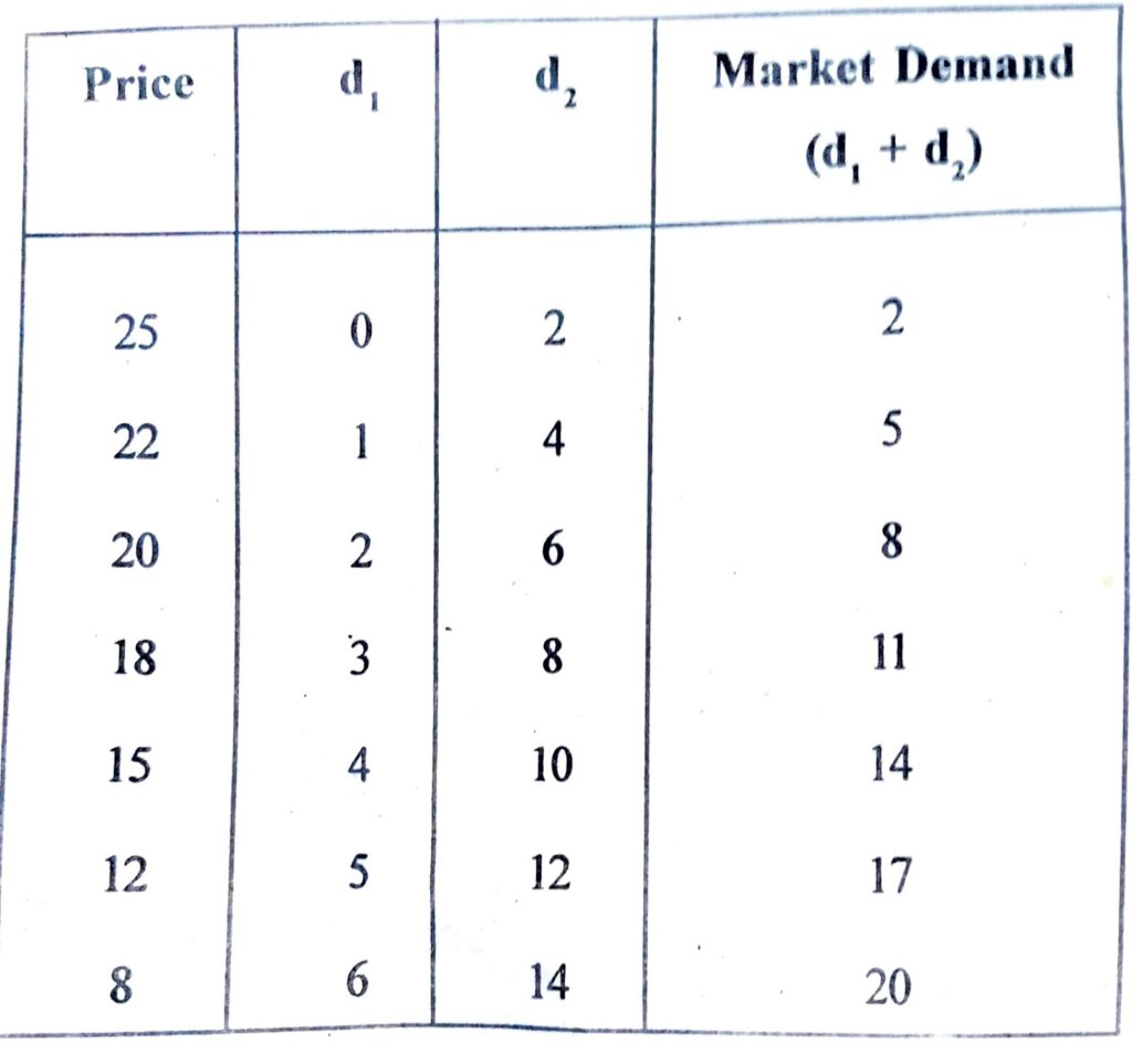 Ans: Market demand curve represents graphically the various total quantities of a commodity demanded by all the consumers in the market at different prices. It is the horizontal summation of the individual demand curves.