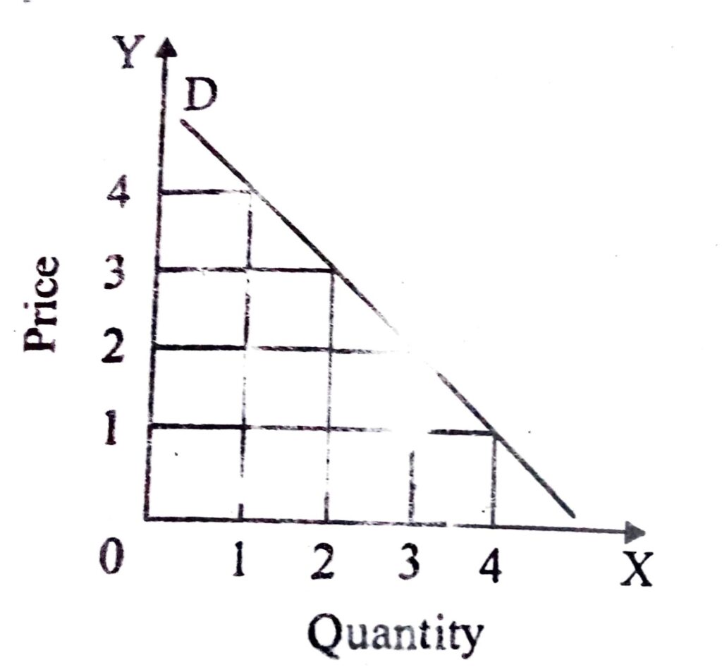 In the diagram its shown that when the rice of a commodity is 1 consumer demanded 4 un ts but when price increases to 4 consumer demanded 1 unit. The DD demand curve is a downward sloping demand curve which explains the law of demand.