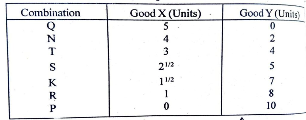 Fig. 16 shows these seven possible combinations indicated by points P, R, K, S,T,N and Q. The line PQ shows combinations of goods X and Y, given their prices, when he spends his income on them. This is because, algebraically I = Px. X + P.Y, where I represents the consumer’s income P and P the prices of goods X and Y, respectively.