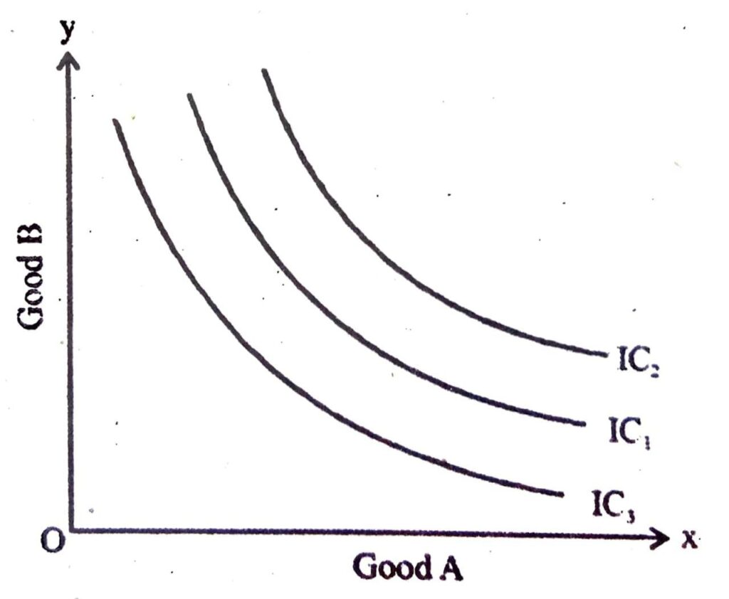 Ans: An indifference curve refers to the graphical representation of all possible combination of two goods which gives the consumer equal level of satisfaction.