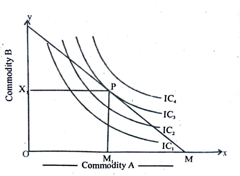 Since all other combinations lie on lower indifference curves, they represent lower levels of satisfaction than combination S which is the consumer’s equilibrium point. We may thus enumerate the conditions of consumer’s equilibrium.