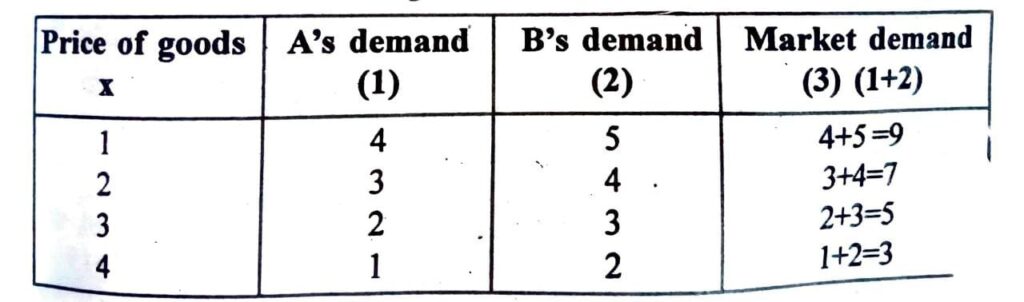 To derive the market demand curve from the individual demand curve, we take the help of market demand schedule. In the following table, the market demand schedule is given-