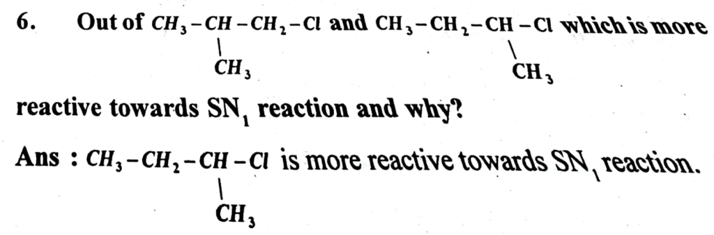 Ans: The carbon in C – Cl bond in chlorobenzene is Sp2 hybridised. In SP2 hybrid orbitats have more of S – character and hence the carbon if chlorobenzene withdraws the electron pair between C – Cl with greater force. As a result, C – Cl bond is shorter than CH3 – Cl.