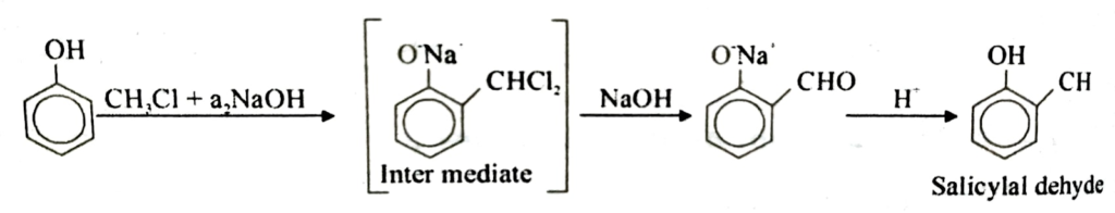 Ans: On treating phenol with chloroform in the presence of sodium hydroxide, a-CHO group is in ortho position of benzene ring. This reaction is called reimer-Tiemann reaction.