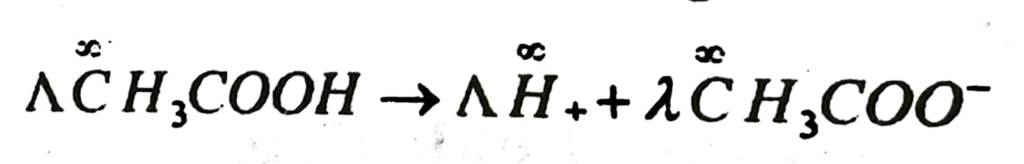 (b) State Kohlrausch law of independent migration of ions. Write an expression for the molar conductivity of acetic acid at infinite dilution according to Kohlrausch law.