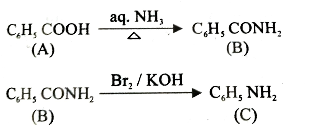 25. (a) An aromatic compound ‘A’ on treatment with aqueous ammonia and heating forms compound ‘B’ which on heating with Br2 and KOH forms a compound ‘C’ of molecular formula CHN. Write the structures and IUPAC names of compounds A, B and C.