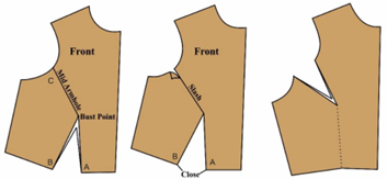 By using dart manipulation, creative designs can be created in garments. Darts are not always stitched as darts, they can be converted into gathers, pleats, tucks, seam lines, style lines, yokes etc.