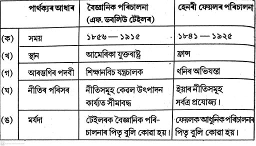 ৩৮। টেইলৰৰ বৈজ্ঞানিক পৰিচালনা আৰু ফেয়লৰ পৰিচালনাৰ নীতিৰ মাজত পার্থক্য দেখুওৱা ।