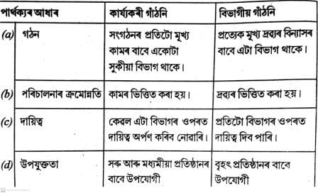 উত্তৰঃ কাৰ্যকৰী আৰু বিভাগীয় সংগঠনৰ বিষয়ে তলত চমুকৈ আলোচনা কৰা হ’ল–