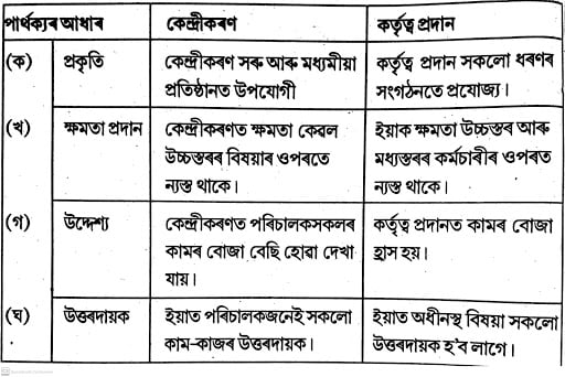 ৪৯। কেন্দ্রীকৰণ আৰু কর্তৃত্ব প্রদানৰ মাজত পার্থক্য দেখুওৱা ।