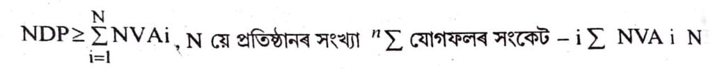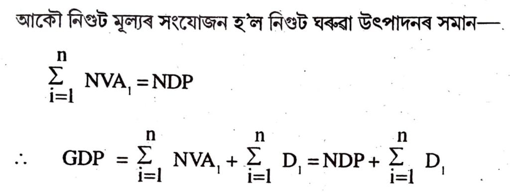 উত্তৰঃ সৰ্বমুঠ সংযোজিত বা নিওট মূল্য হ’ল মুঠ সংযোজিত মূল্যৰ পৰা ক্ষয়-ক্ষতির মূল্য বাদ দিলে থকা অংশটো অর্থাৎ NVA = GVA-D
