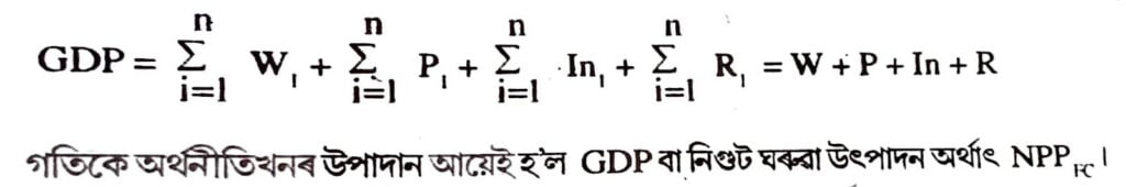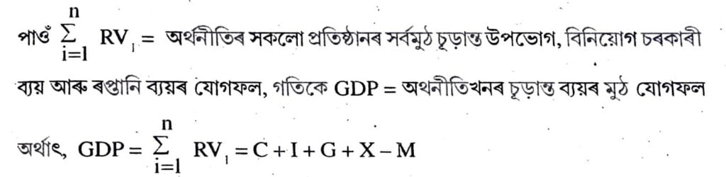 (ক) এটা বছৰত এটা অৰ্থনীতিৰ চূড়ান্ত দ্ৰব্যৰ মুঠ উৎপাদন উপভোগ বা – ৰূপত হ’ব পাৰে। –