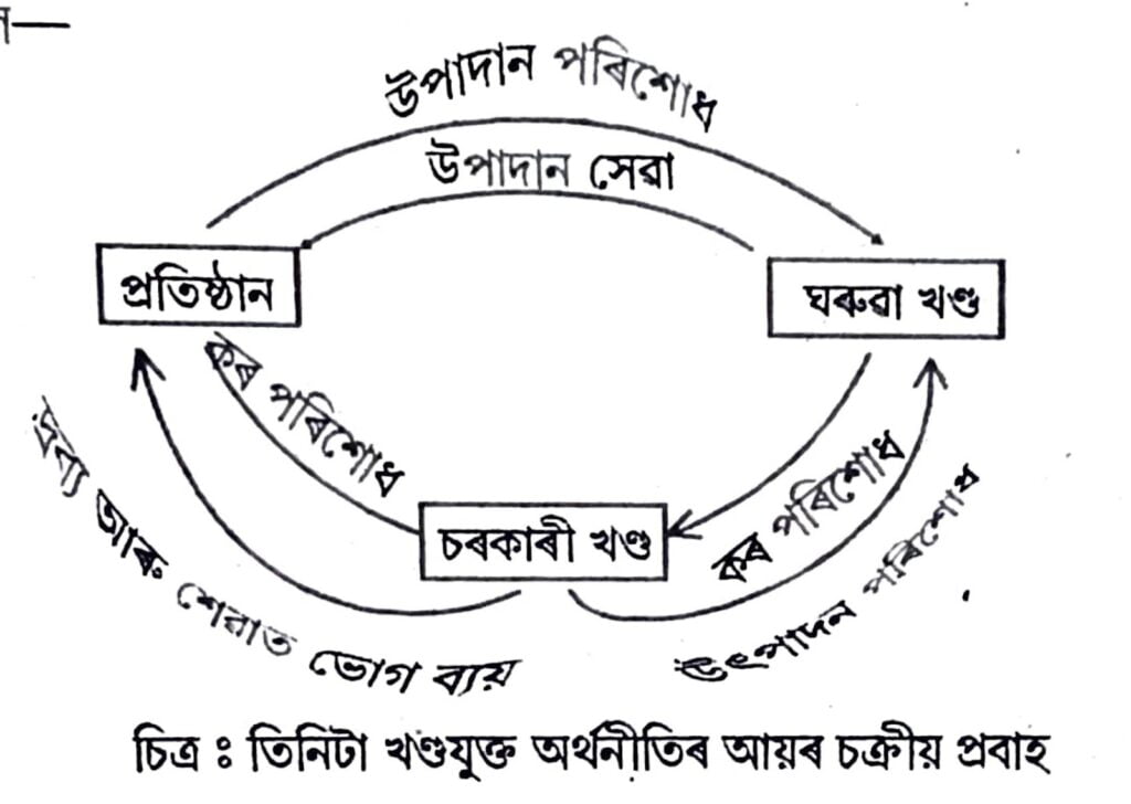 প্রশ্ন ১২। এখন তিনিটা খণ্ডযুক্ত অৰ্থনীতিৰ আয়ৰ চক্ৰীয় প্ৰৱাহৰ বিৱৰণ দিয়া।