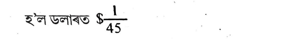 উত্তৰঃ ওপৰৰ তথ্যটোৱে এটা ডলাৰৰ মূল্য মুদ্ৰাৰ মান 45 টকা বুজাইছে। সলনিৰ মূল্য