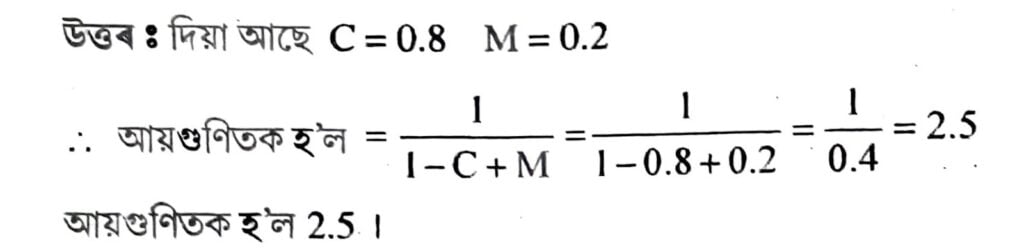 প্রশ্ন ৫। ধৰা হ’ল এখন অর্থনীতিত প্রদত্ত উপভোগ কার্য হ’ল C = 60 + 0.7y; চৰকাৰী ব্যয় (G) = 50; ৰপ্তানি (x) = 80; চৰকাৰী কৰ ৰাজহ (T) = 60 আৰু আমদানি (M) = 50 + 0.10y, , এতিয়া
