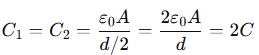 The capacitance of each new capacitor becomes: