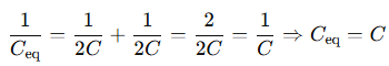 Since the two capacitors are in series, the equivalent capacitance Ceq is: