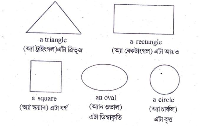 4. Identify the objects in the picture. Say the names: (আইডেন্টিফাই দ্য অৱজেক্টছ ইন দ্য পিকচাৰ। ছে দ্য নেইমছঃ) ছবিৰ বস্তুবোৰ চিনাক্ত কৰা। নামবোৰ কোৱা :