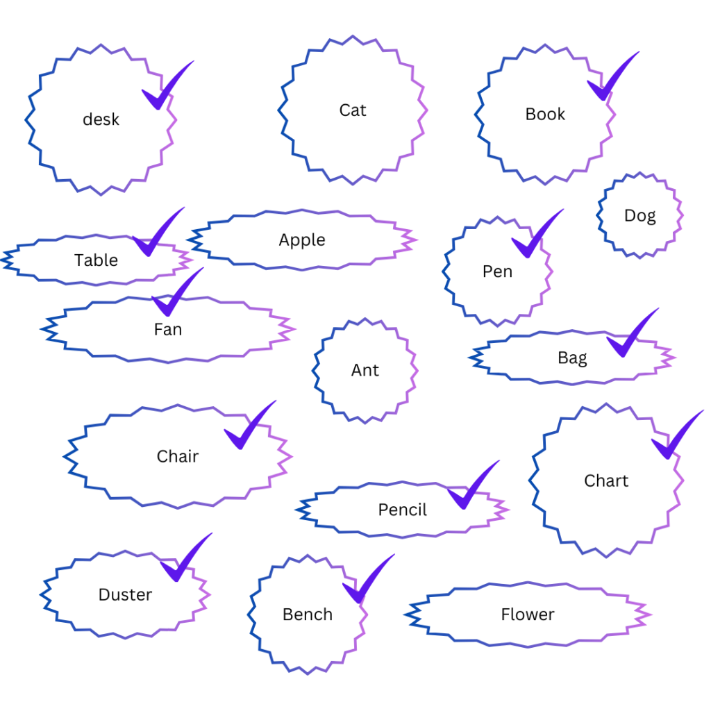 18. Put a tick (√) on the things that you see in your classroom: