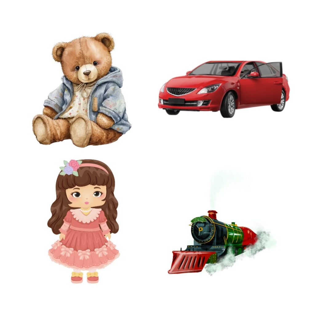 Do you like playing with toys? Colour the toy you like and draw your favourite toy: