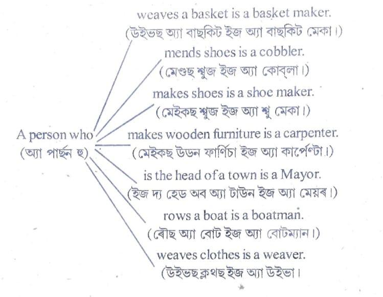 | My grandmother tells me stories. আইতাই মোক সাধুকথা কয়। | My father tells me stories at home. দেউতাই মোক ঘৰত সাধুকথা কয়। |