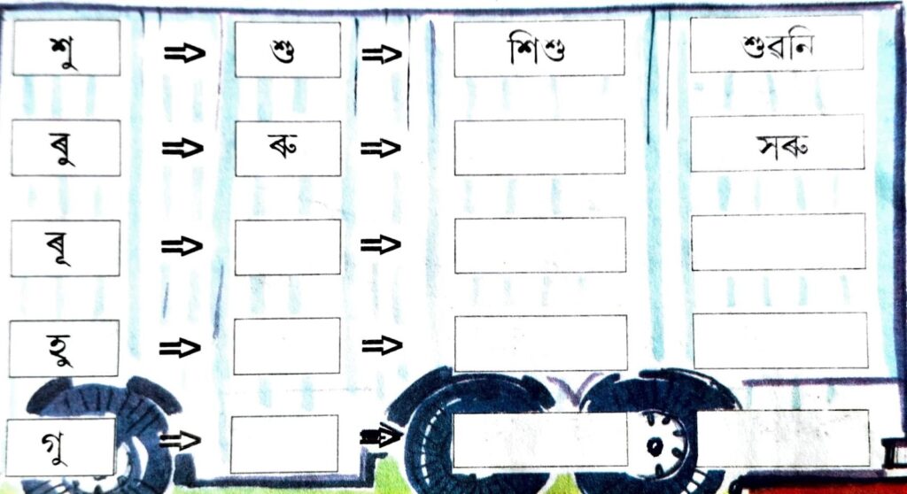 ১। পদ্যটি স্পষ্ট আৰু শুদ্ধ উচ্চাৰণেৰে পঢ়োঁ আৰু আবৃত্তি কৰোঁ আহা—
