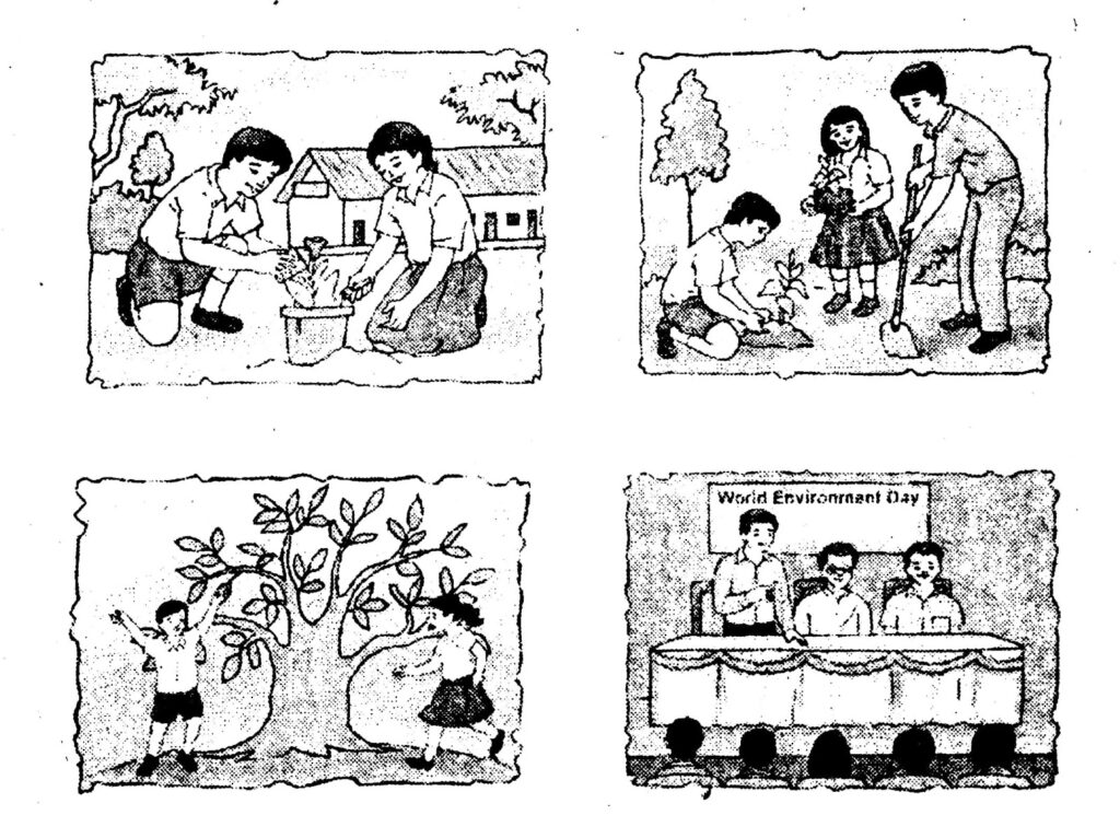 Ans. Picture –1: A boy and a girl are planting and watering a sapling.