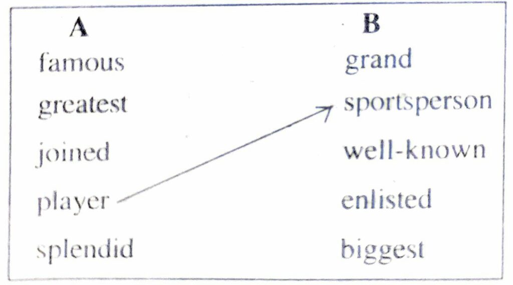 Q. 7. Here is another exercise to practise the new words you have learned. Say the words aloud and match the words in column A with their synonyms (words with similar meaning) in a column B. One is done for you.