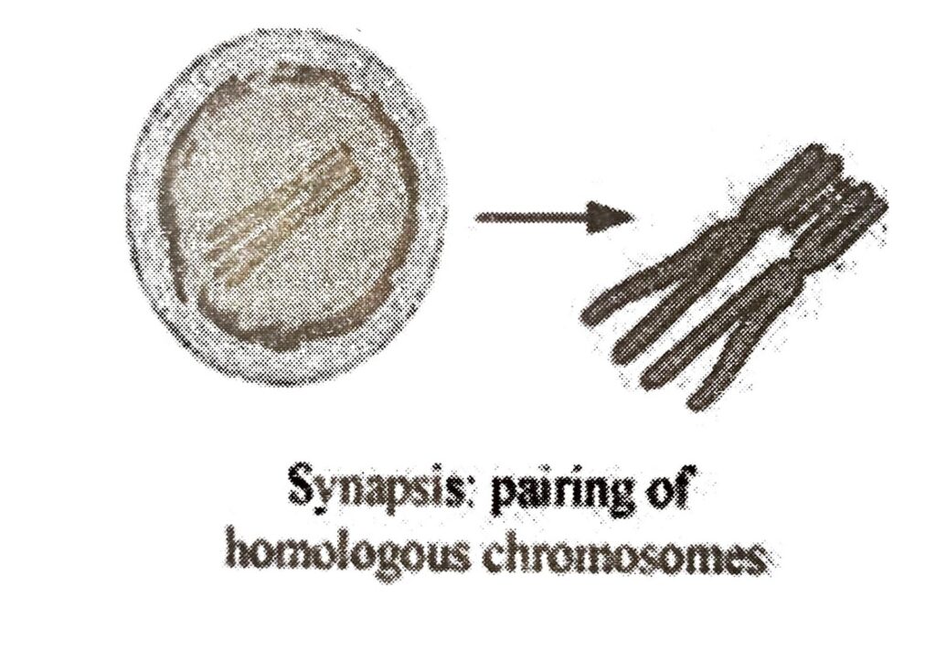Ans. (a) Synapsis: The pairing of homologous chromosomes is called synapsis. This occurs during zygotene stage of prophase I of meiosis.
