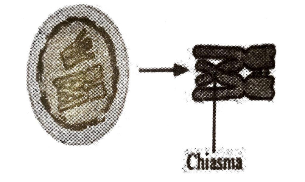 (c) Chiasmata Chromosome separates except in the crossing over sites during the diplotene stage of prophase I of meiosis. This point of attachment between the chromosomes is called chiasmata.