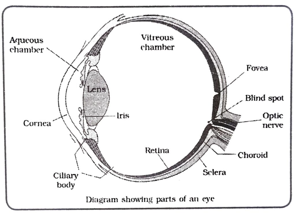 (ii) The wall of the eye ball is composed of three layers: Sclera, Choroid and Retina.