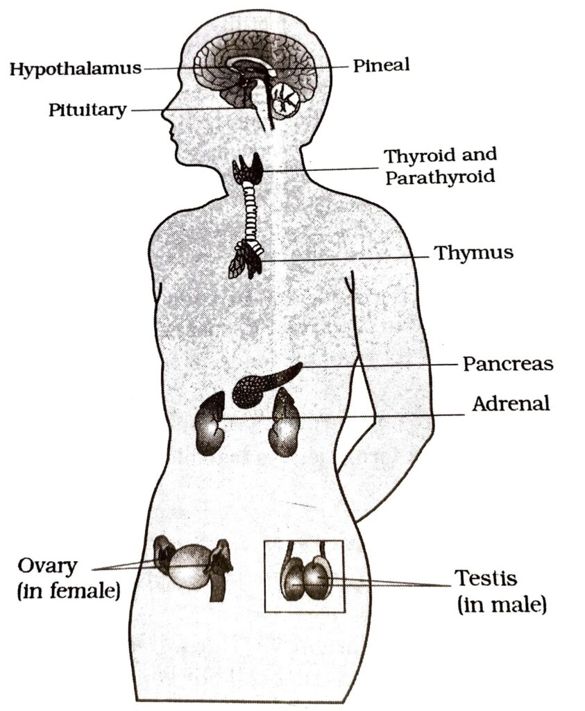 Q.2. Diagrammatically indicate the location of the various endocrine glands in our body.