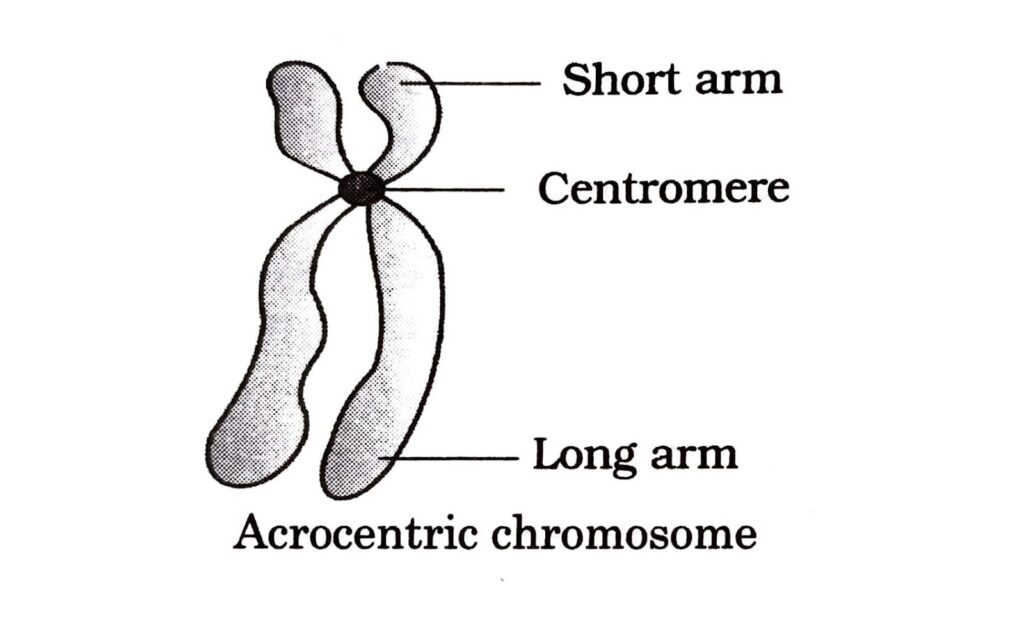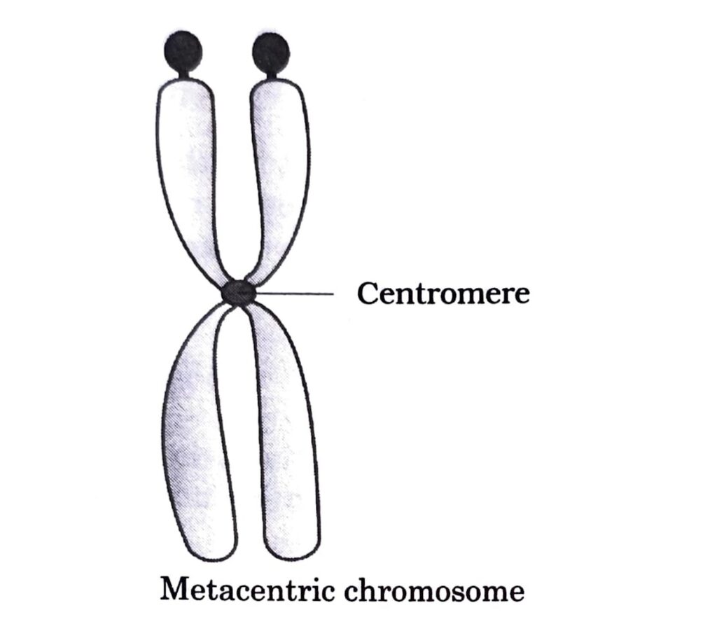 Ans. There are two chromosome halves or chromatids attached to each other by a narrow area called centromere or primary constriction.Based on the position of centromere, chromosomes are of four types-