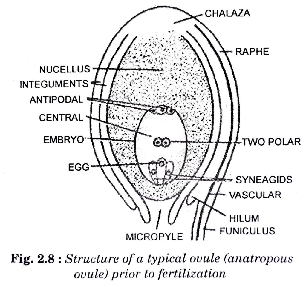 Q. 4. With a neat, labelled diagram, describe the parts of a typical angiosperm ovule.