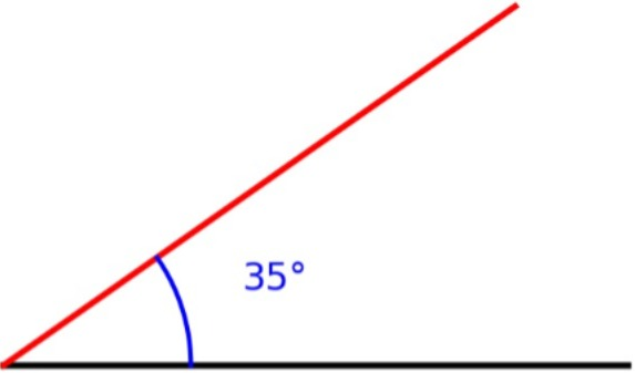 क्षैतिज आधार और दरवाजे का पतला बाहरी किनारा इस कोण की भुजाएँ होंगी।