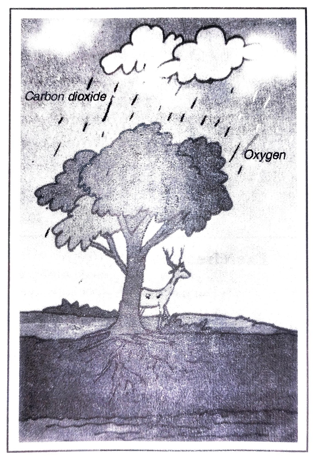 Ans: Plants release oxygen in the atmosphere during the process called photosynthesis. This oxygen is inhaled by the animals living in the forest for their respirations. During respiration, they release carbon dioxide, which is absorbed by plants. In this way the O₂-CO₂ cycle goes on in the forest.