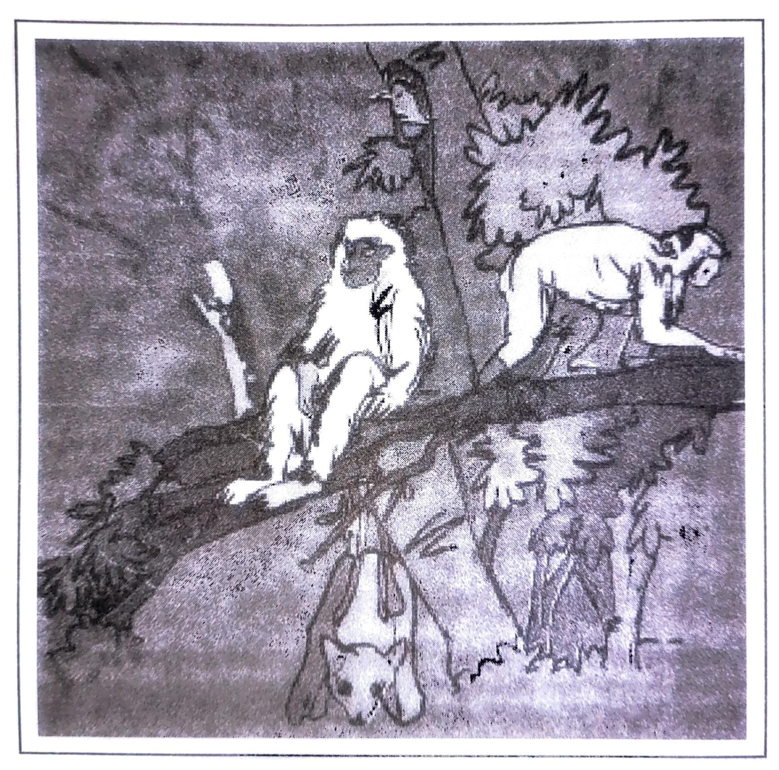 (ii) There are some animals in the figure like apes, monkey and jackal.
