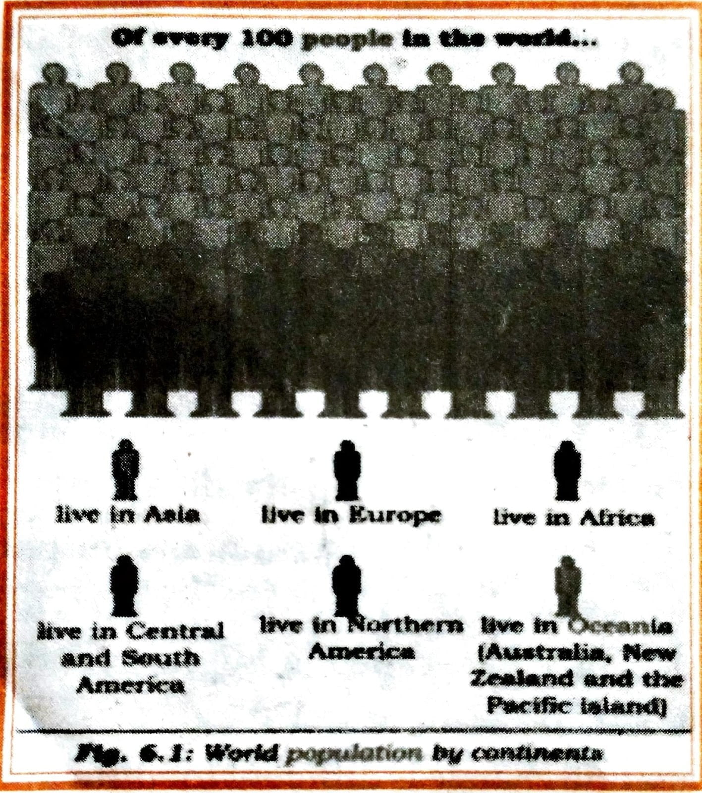 I. Look at the fig. 6.1 and find out continents which has population: