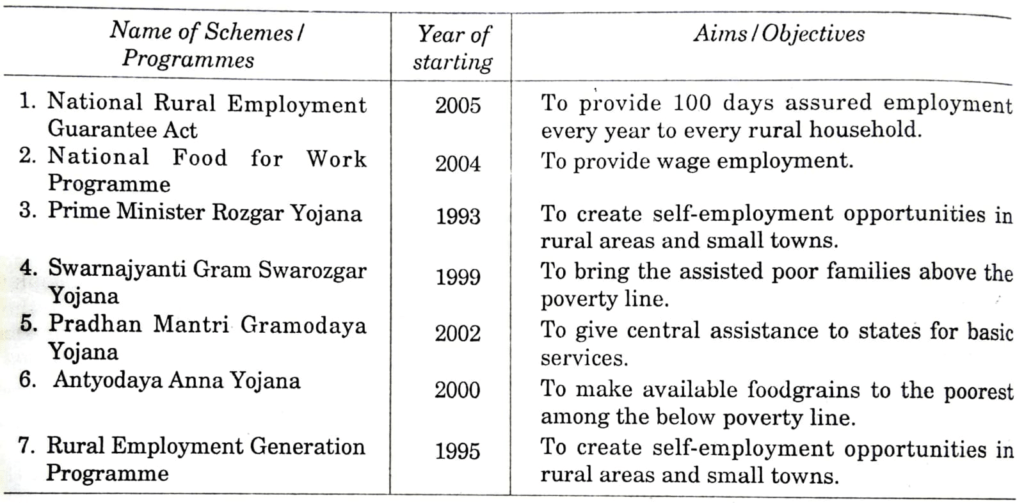 Q. 7. Describe any three poverty alleviation programmes launched by the Government of India.