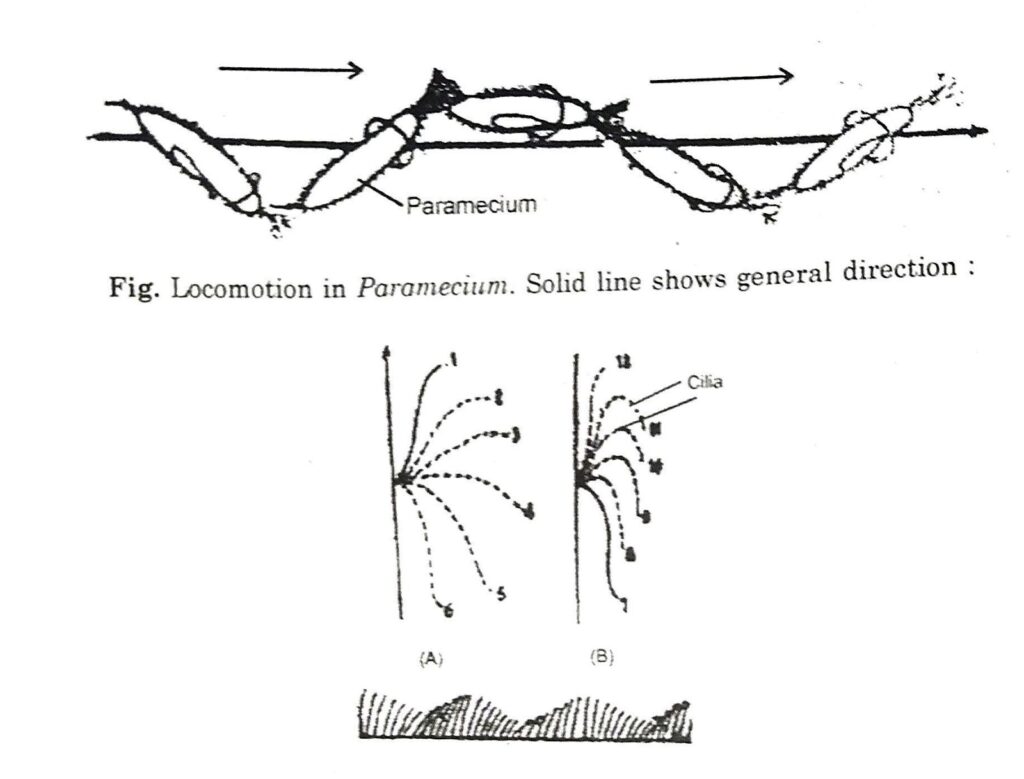 Ans: Paramecium: Cilia beat ® start with fast stroke in one direction ® Effective stroke ® it bends back ® returns to its original pisetion ® IInd stroke is called Recovery stroke ® water is propelled to ciliated surface now.