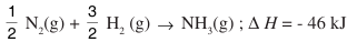 Ans: ΔrH⁰ = ∑ B.E. (reactant bonds) – ∑ B.E. (products bonds) or – 46 (kJ mol–1) = 3 × 218 (kJ mol⁻¹) + 973 (kJ mol⁻¹) – B.E. (NH₃(g)Bonds)
