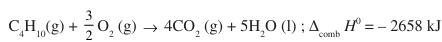 2. Calculate the enthalpy change for complete combustion of 29.0 g of butane, if: