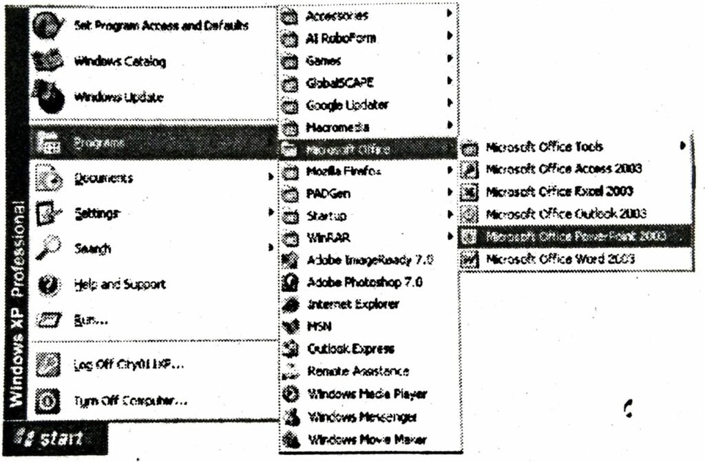 Ans. We can start our Power Point program in different ways. One way is using start button: