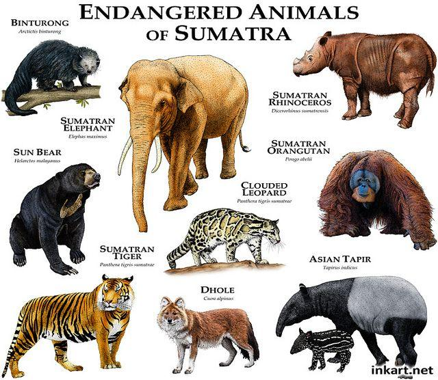 Five animal species whose natural habitat is destroyed due to human activities are Rhino, Orangutan, Sumatran tiger, Elephants and Leopard.