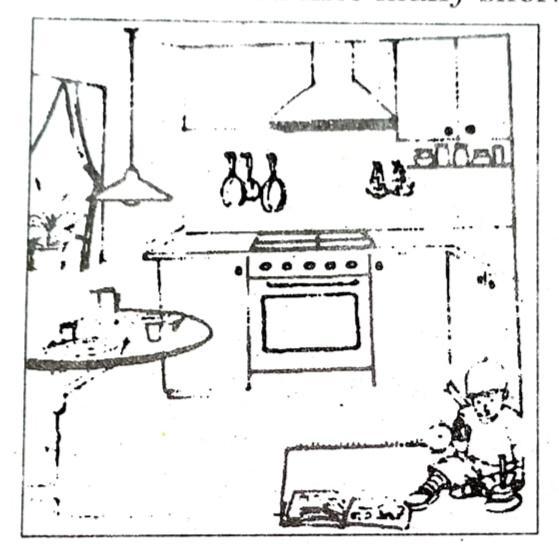 Q. 2. (a) Draw a diagram of your kitchen to indicate storage of various items. Suggest two changes to have more efficient storing.