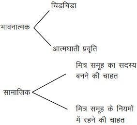 (ii) अनैतिक कार्यों का दबाव: मित्र समूह कई बार किशोरों पर उनकी इच्छा के विरुद्ध कार्य करने के लिए दबाव डालते हैं, जिसका बाद में पछतावा हो सकता है। उदाहरण के लिए, उन पर नशीली दवाएँ लेने के लिए या दुकानों से कोई वस्तु चुराने के लिए दबाव डालना।